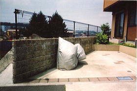 工事内容: 間知石を壊してRCで基礎を作り、境界まで車庫を広げる事ができました。