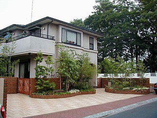 工事内容: 車庫を広げ、アプローチもオープンな感じに仕上げました。お庭は、和風洋風どちらも楽しめるようにしました。また、自転車置き場も工夫しました。