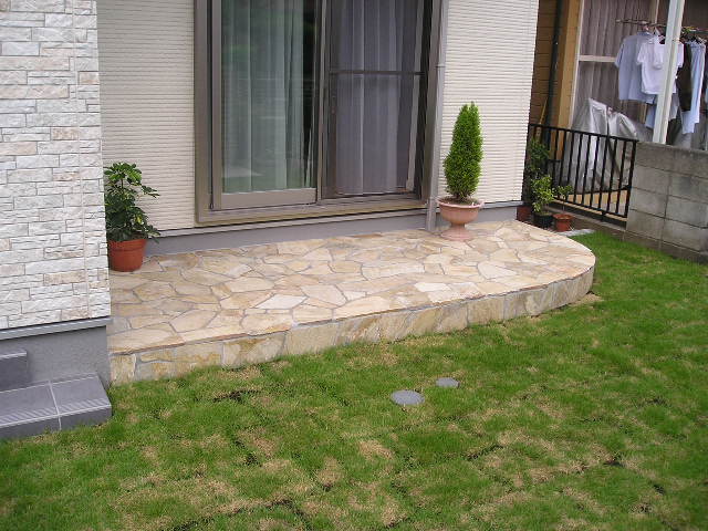 ・全面道路は、車庫の方が低くなっているので、車庫と庭の間は御影石で見切りをつけました。