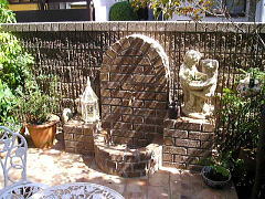 • 洗い場はレンガで囲い、背中部分をアーチ状に積み上げ、さらに左右に物置台を作り、全体がオブジェにもなるよう大きく計画しました。